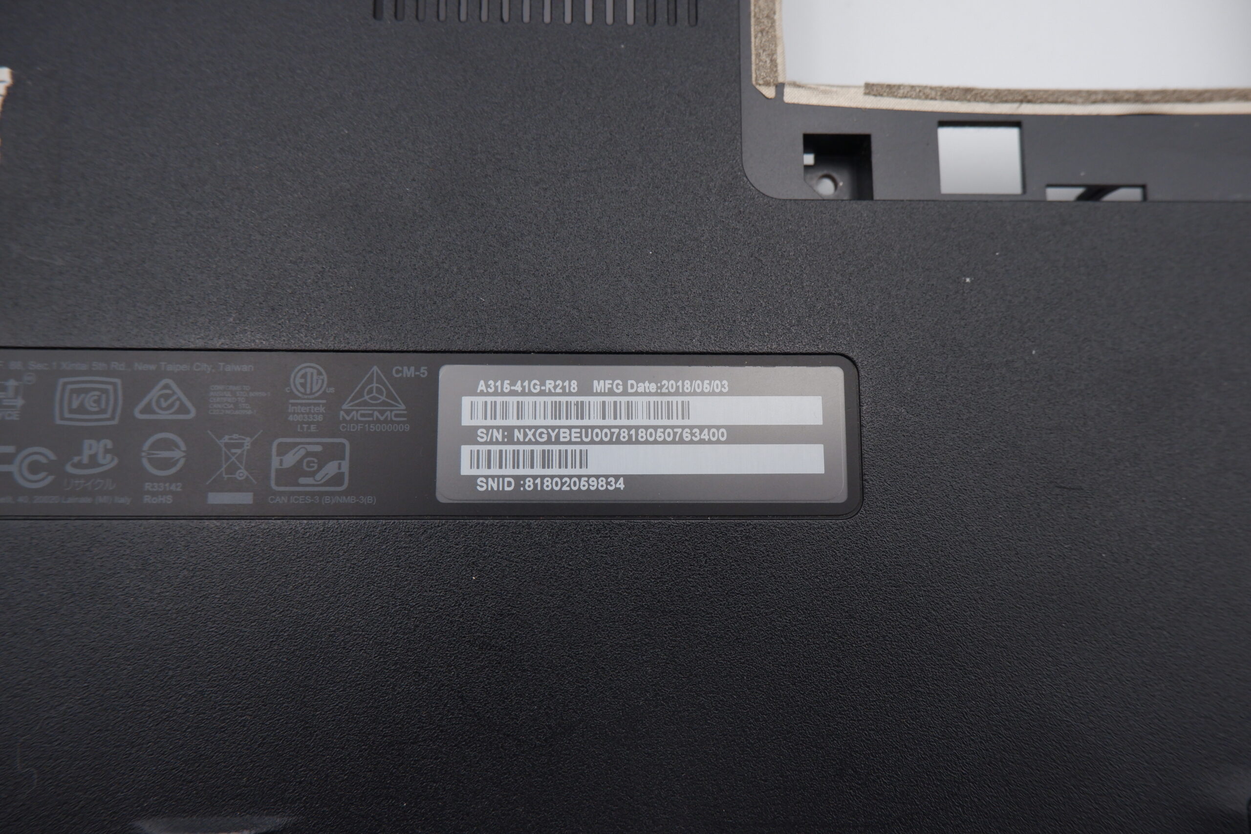 • Eredeti laptop típusa: Acer Aspire 3 A315-41G