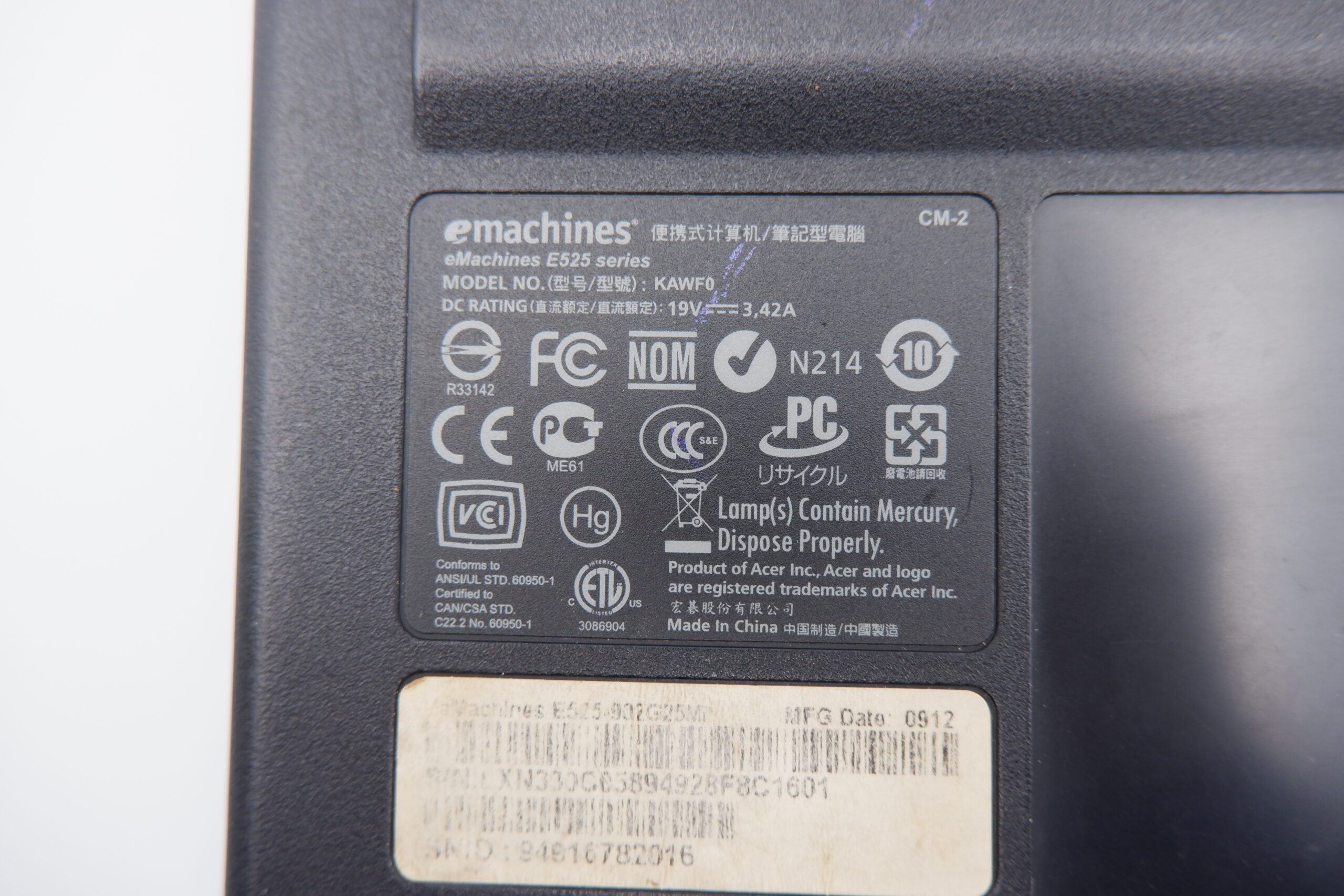 • Eredeti laptop típusa: ACER eMachine E525