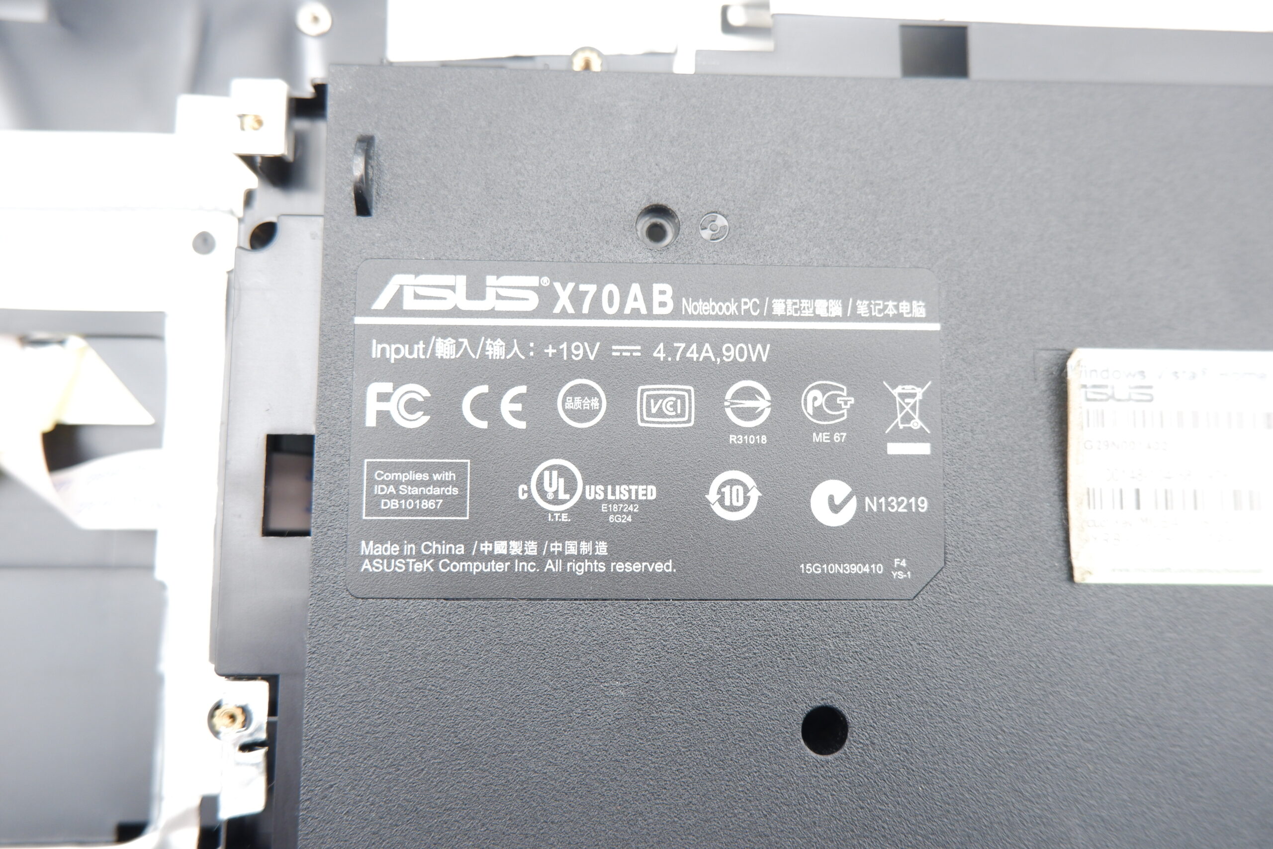 • Eredeti laptop típusa: ASUS X70AB