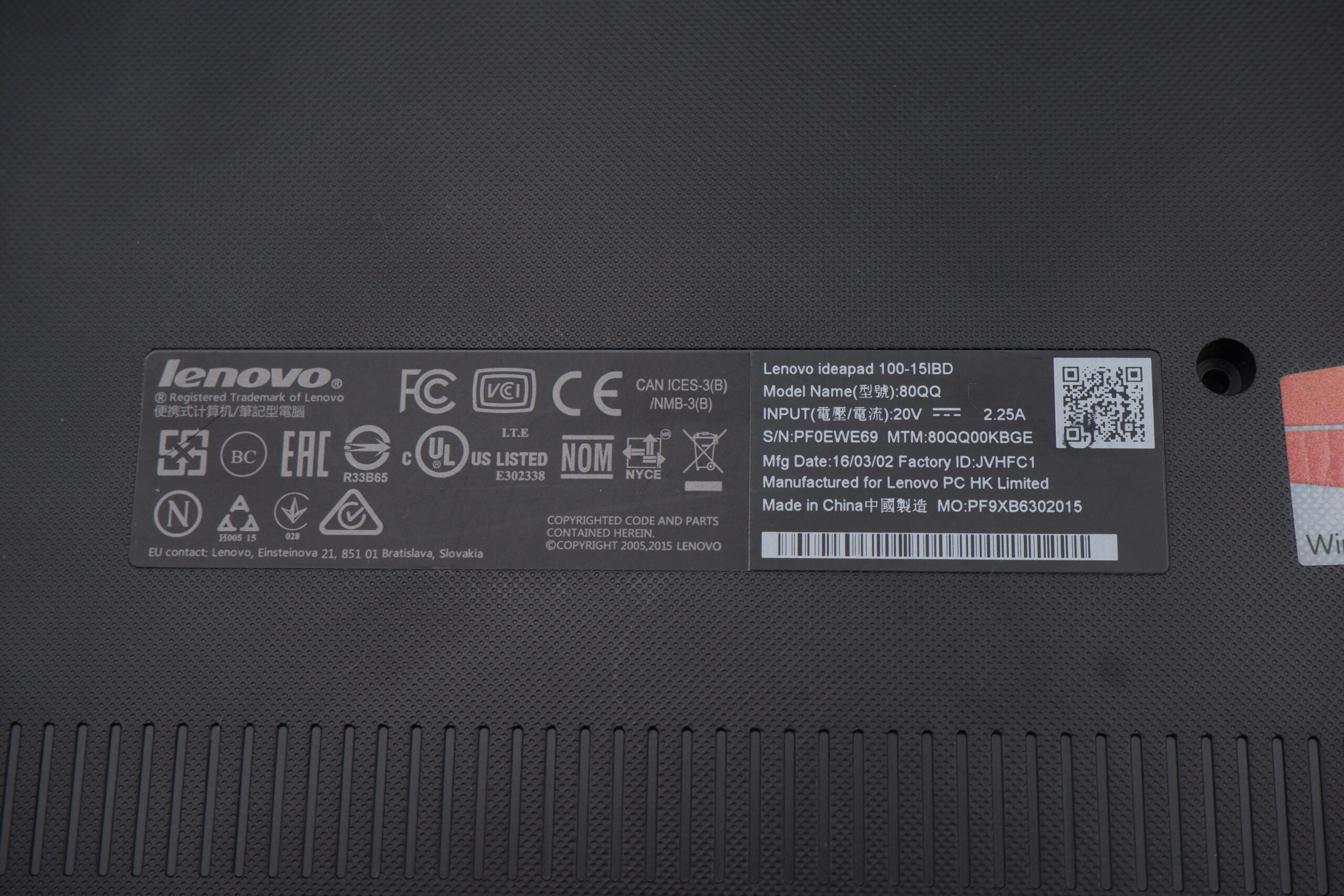 - Eredeti laptop típusa: Lenovo IdeaPad 100-15IBD