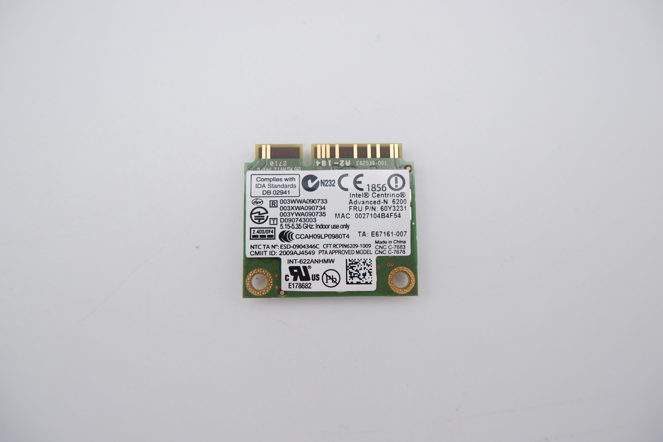 LENOVO Intel Centrino Advanced-N 6200 wifi kártya 622ANHMW 572509-001